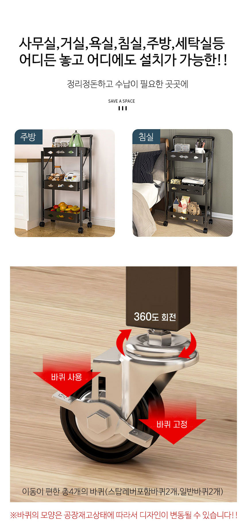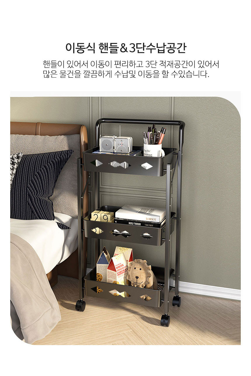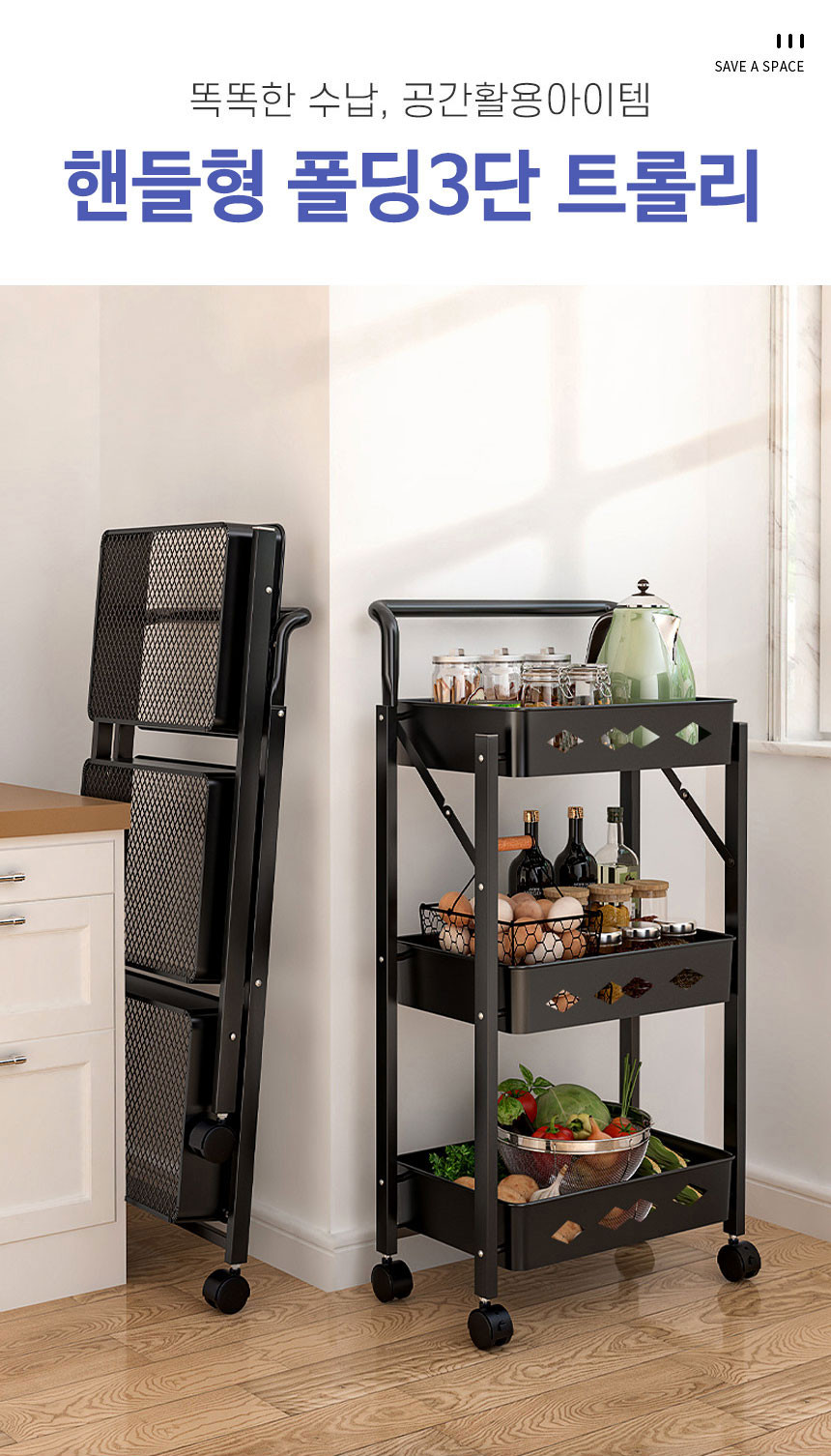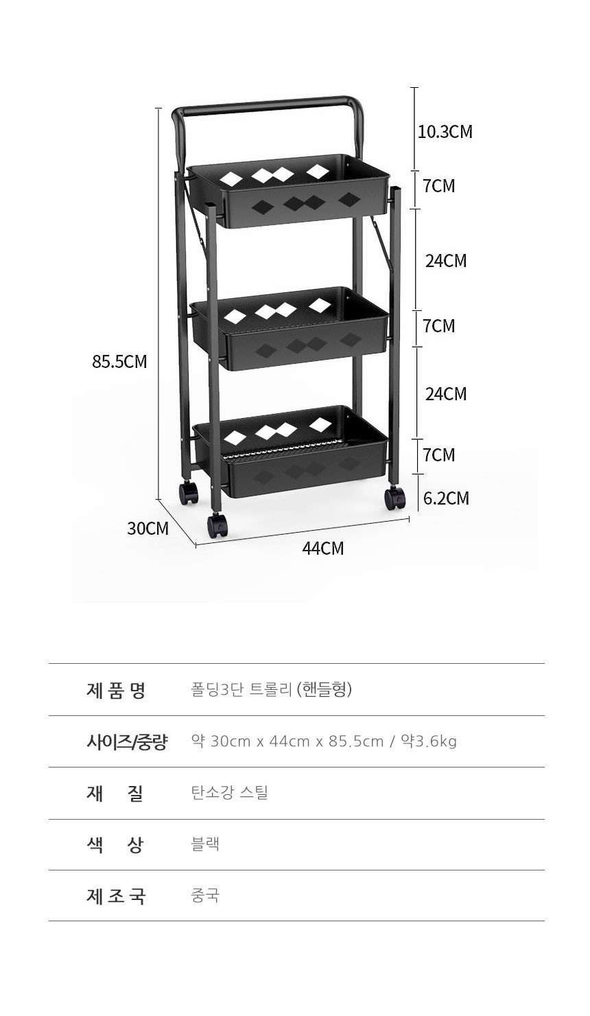 미용실 틈새 세탁실 접이식 트롤리 핸들형 선반 수납선반 거실 바퀴달린 3단 여바라